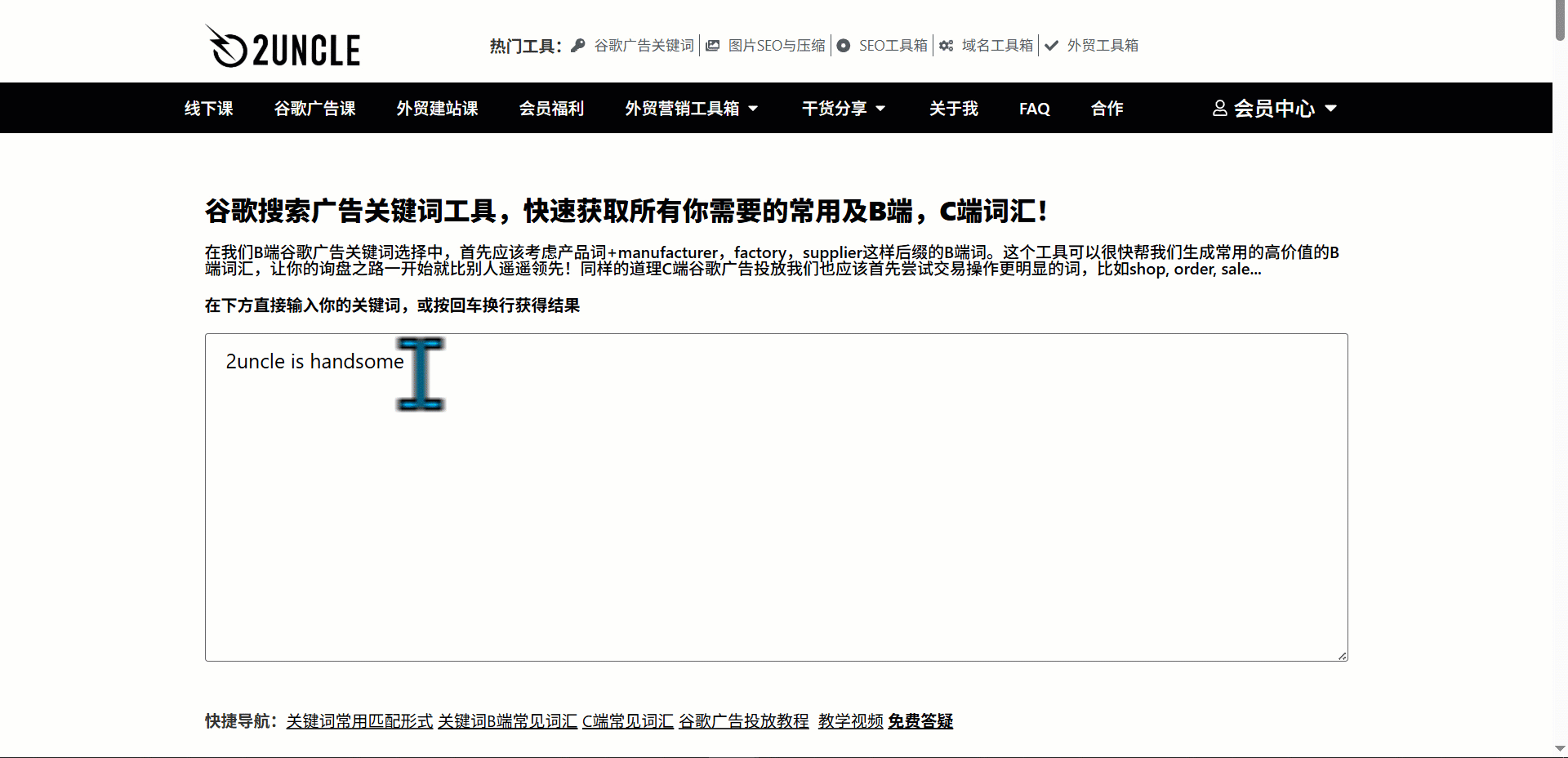 先把你产品词放进二叔开发这个谷歌关键词工具文本框,B端选B端常见词,C端选C端常见词。